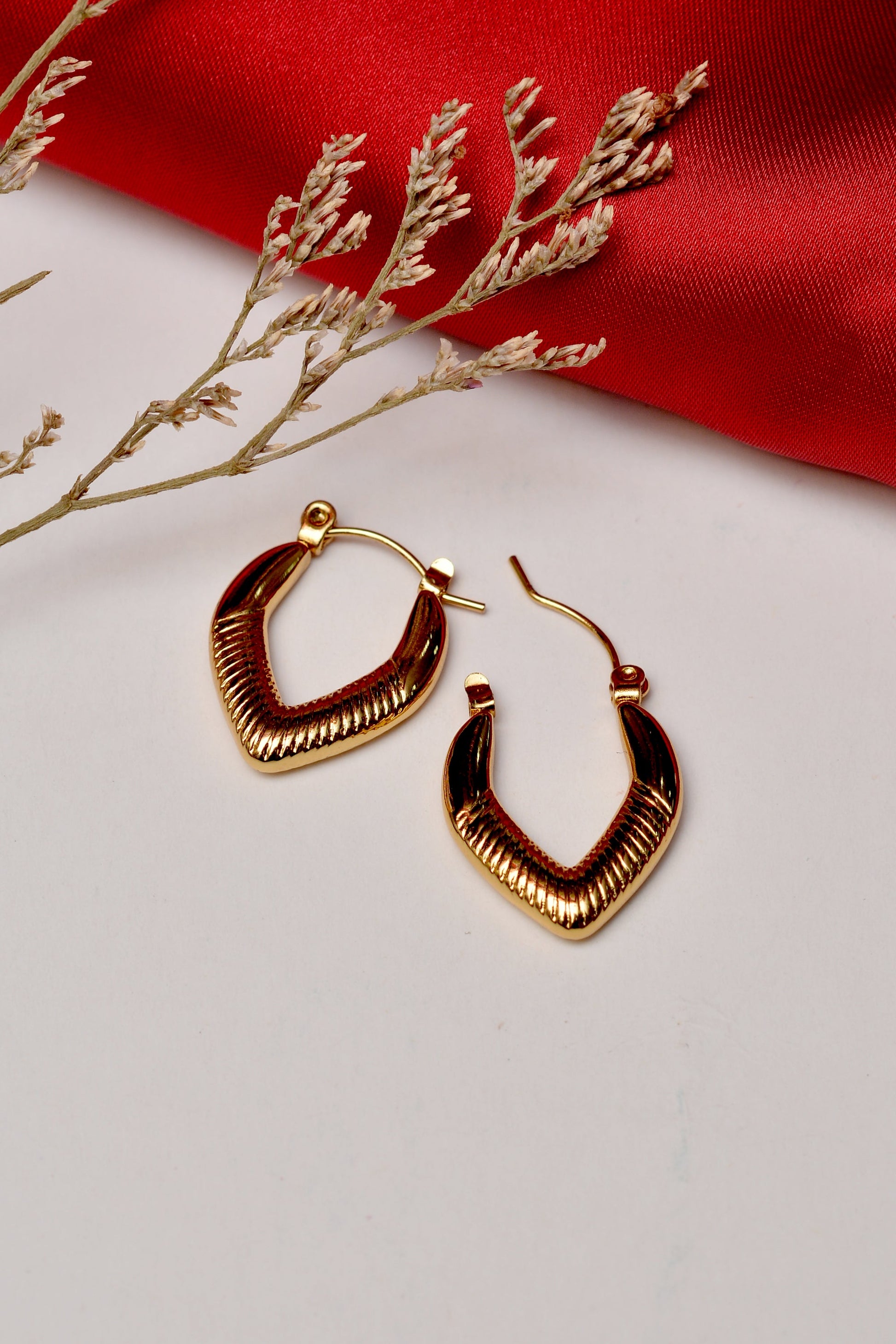 Avoid water, perfumes, and harsh chemicals. Store your Golden Ear Hoop in a dry jewelry box or soft pouch to preserve its shine and quality.