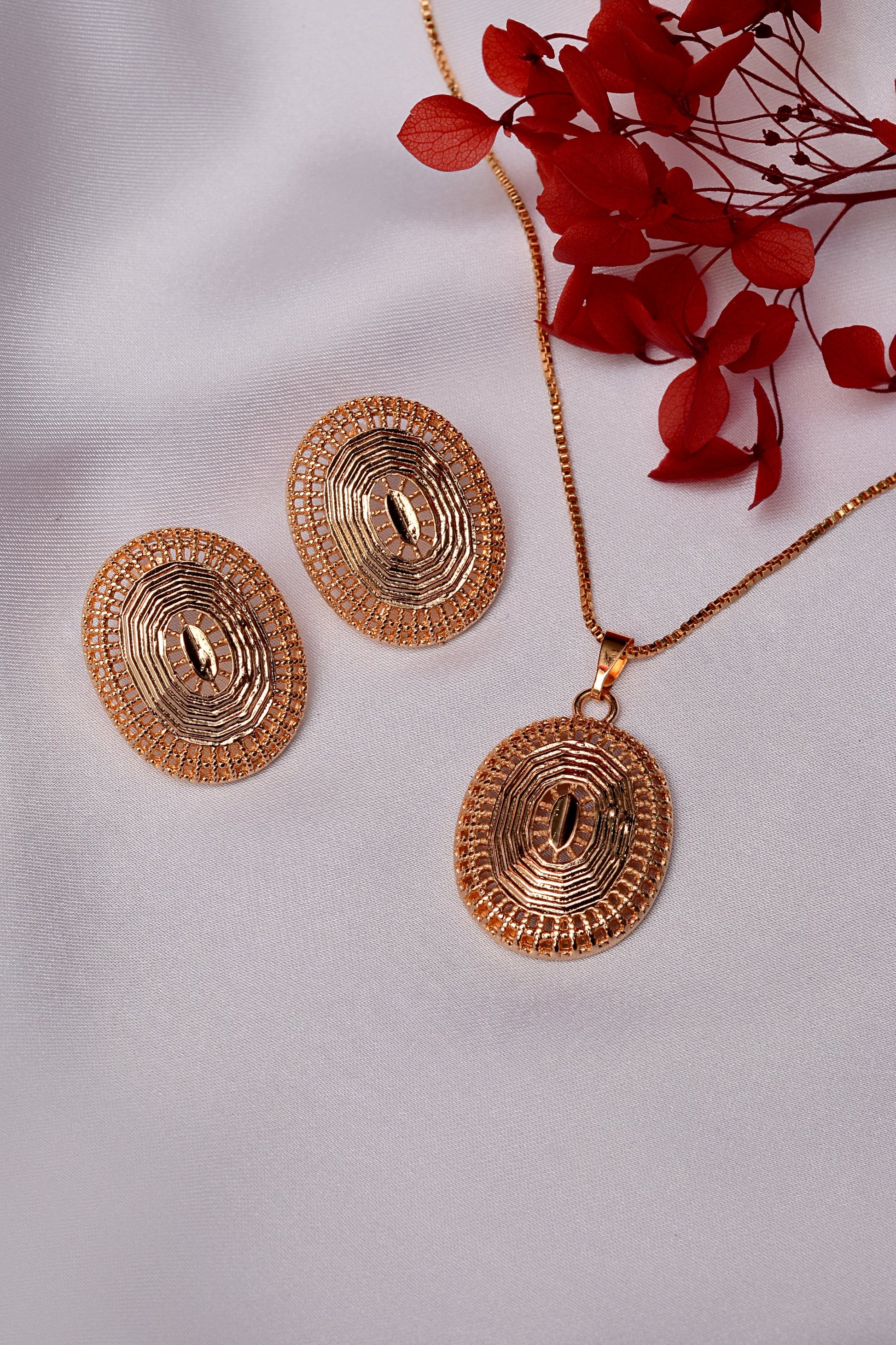 Our Golden Locket Set is thoughtfully designed to provide style, comfort, and practicality. The lightweight design ensures comfortable all-day wear, while the polished golden finish adds luxurious appeal. The locket opens easily to hold a small photo or keepsake, making it a personal and meaningful accessory for yourself or as a gift for loved ones.